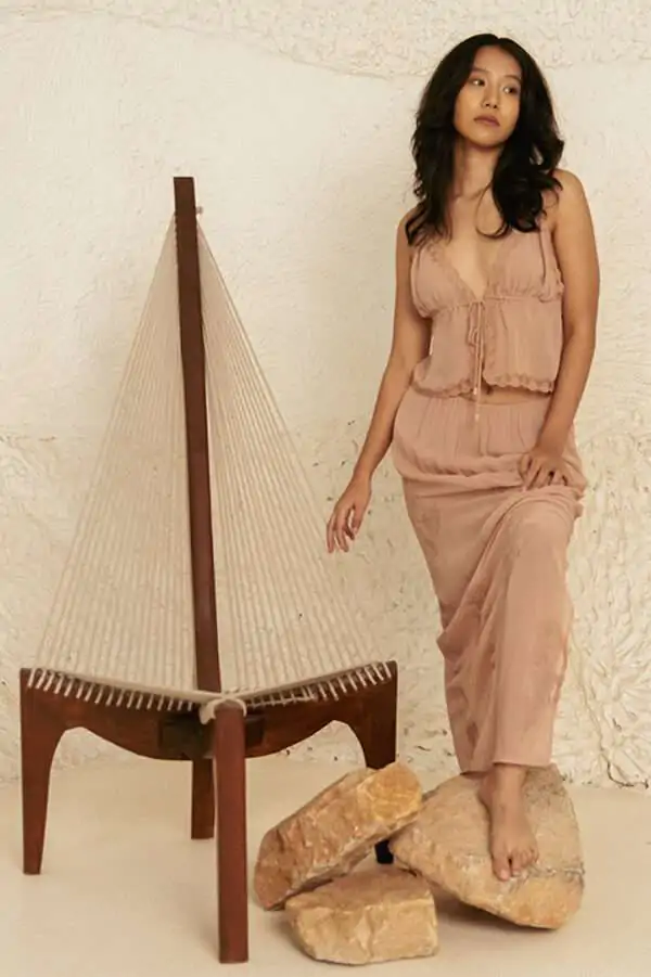 Perth noodle strap front open crop top and Hali embroidered straight skirt